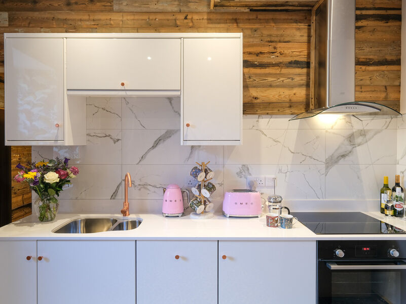 Unwind in the separate living room with its bespoke leather snuggler sofa and sleek white gloss kitchen, or retreat to the private infrared sauna for a soothing detox. The white marble effect bathroom includes a large spa bath and walk in shower, offering the perfect balance of elegance and comfort. Stylish and completely private, Hampsfell Hideaway is the perfect retreat for a truly memorable escape.